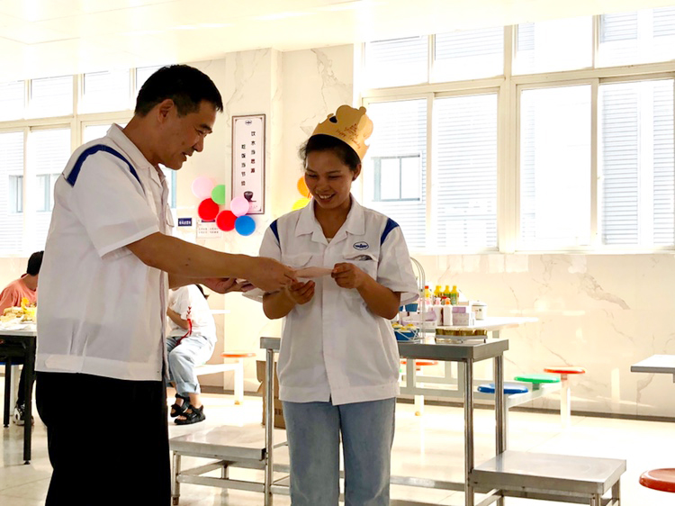 The company’s vice president Zhong Lizhong and financial director Liang Hongsheng gave birthday congratulations and distributed birthday cards to birthday employees.